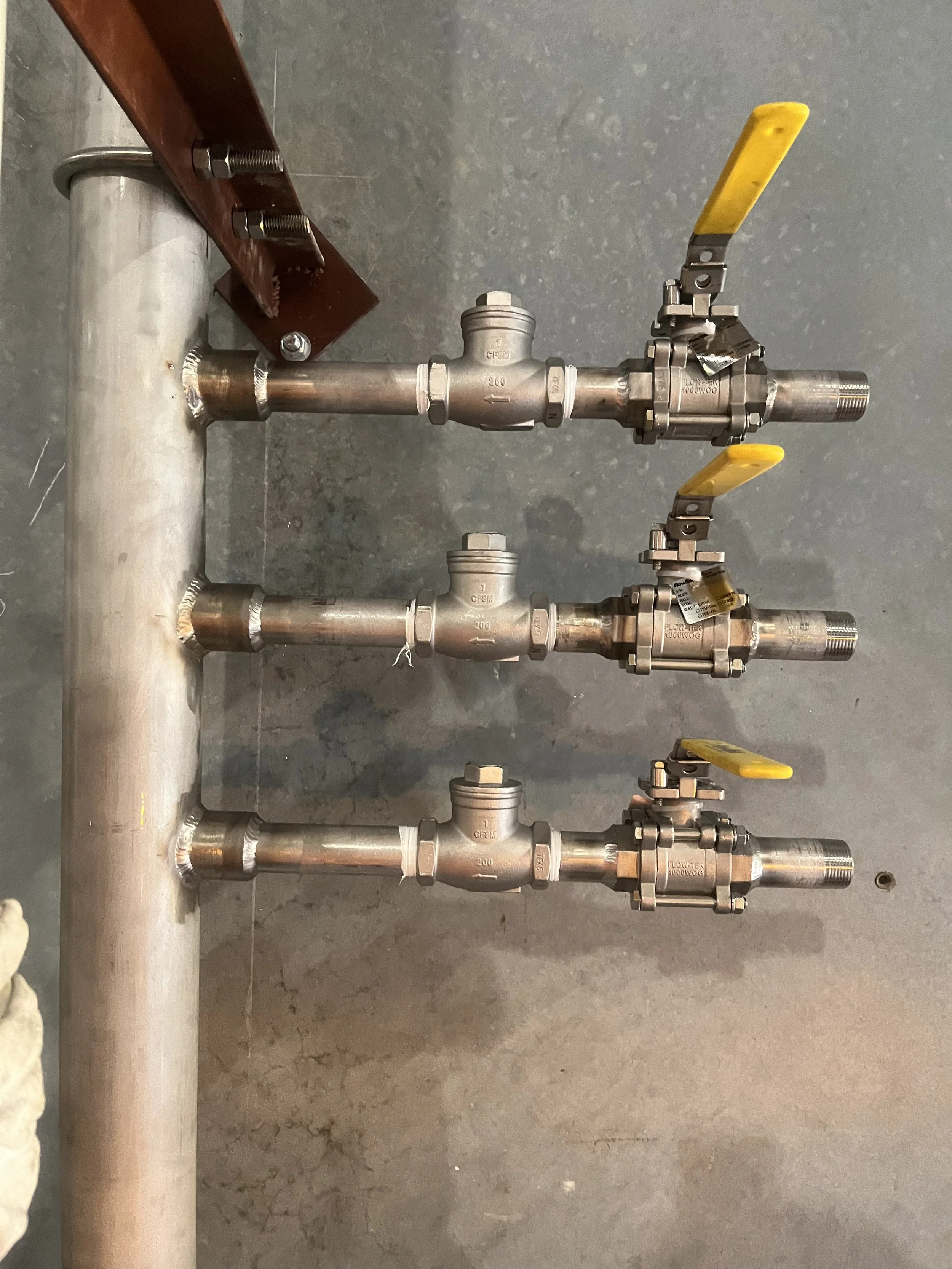 This project included the fabrication of a stainless steel pipe header for a water chiller system.